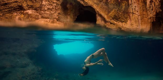 Accessed by interior entrance points leading off from the beach, the underwater caves surround a hollow center that makes the destination a veritable haven for intrepid divers.