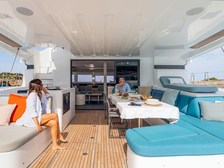 MAGNIFICO Lagoon 55 - flybridge seating and dining area