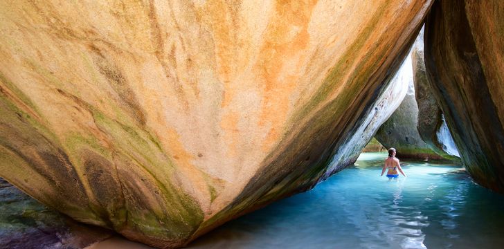 Located near the southern tip of the island, the Baths are a collection of giant granite boulders that create a fantastic natural playground. This is the perfect place to explore with your family, whether you are simply swimming or you are snorkeling! The Baths are one of Virgin Gorda and the BVI's most popular features and are a must stop destination on any charter in the islands.