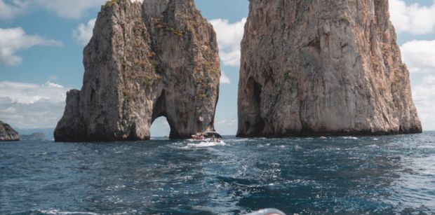 One of the most iconic sights of Capri Island is the Faraglioni Rocks. Three towering rock formations in the South-East of the island. The only way to reach this incredible attraction is by boat. As soon as you get there you will find yourself in front of 100 meters high rocks surrounded by a crystal-clear sea where you can anchor, basque in the Mediterranean sunshine and enjoy this unique landscape.