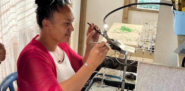 We were shown the entire process of creating pearls. Above you can see a member of the family inserting pieces of shell and a little ball into the oyster so that it creates a pearl.