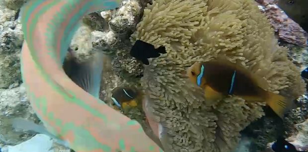 Jerome took us by tender to a coral garden which we named the “fish river” because there is a constant flow of water through the coral reef that is full of some of the most amazingly colorful tropical fish imaginable. You walk across the island for about 100 meters, jump in with your mask and snorkel, and are literally pulled by the current through the coral with fish surrounding you. We were literally blown away. Here are some photos.