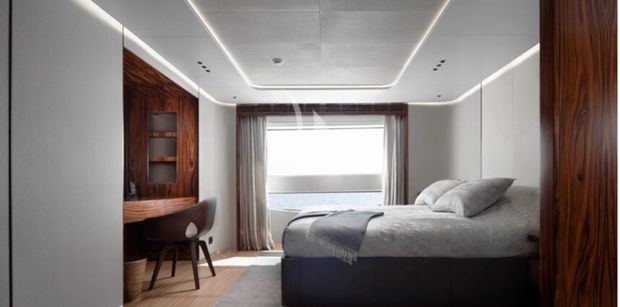 Accommodating up to 12 guests in five cabins, her full-beam Master Suite is a private sanctuary with a lounge, dressing areas, and his-and-her bathrooms, complemented by an adjacent gym for the perfect balance of indulgence and wellbeing.
