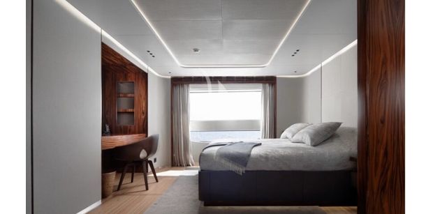 Accommodating up to 12 guests in five cabins, her full-beam Master Suite is a private sanctuary with a lounge, dressing areas, and his-and-her bathrooms, complemented by an adjacent gym for the perfect balance of indulgence and wellbeing.