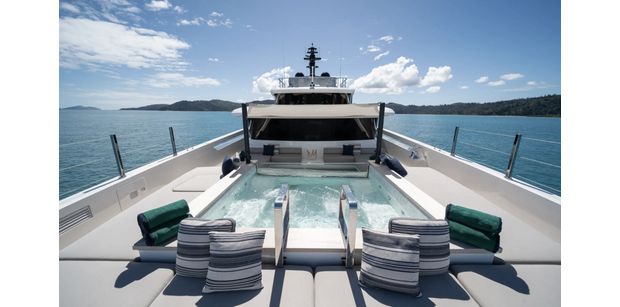 DAWO’s foredeck has been designed as a dedicated social retreat. The whirlpool takes centre stage, surrounded by ample sun pads, and is protected from the sun with an optional canopy shade. Combine the hedonistic beach clubs of Hvar with your very own Nikki Beach-esque plunge pool on the foredeck of your Benetti Luxury Crewed Motor Yacht. Whether enjoyed during the heat of the day or under the stars, this private retreat under the port is an elevated setting for unwinding on the coast of Croatia.
