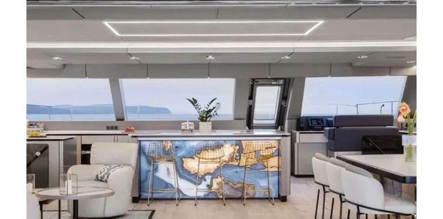 NAUTI NICKEL showcases a striking contrast of contemporary white marble and sleek black finishes, creating an atmosphere of effortless sophistication. Her five plush cabins welcome up to 10 guests in true VIP comfort.