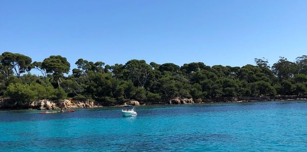 On one side we had the island of Saint-Honorat, an impressive backdrop with the imposing Cistercian monastery. On the other side, the island of Santa Margherita is covered by a forest of pines and eucalyptus whose perfumes reached us on the water. All around us, the sea was all sorts of shades of blue. Who would have thought that we were just a few minutes from the glamorous and chic Cannes? Here the atmosphere was of peace, beauty and unspoiled nature.