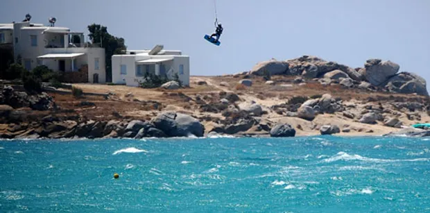 Naxos Island is the most known kitesurfing spot in the Cyclades. When the meltemi is blowing, Mikri Vigla bay is the ideal playground for kitesurfers. A steady wind of 20-25 knots and relatively high waves combine to create the ideal conditions for spectacular jumps. When you are not wrestling with the wind and waves, take some time to explore the island of Naxos, particularly the Northern inland villages, which are unspoiled by mass tourism.