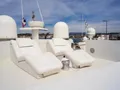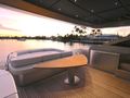 The interior layout offers a modern and stylish look. On the main deck of 90 ft Pershing the light, airy saloon stretches a third of the length of the boat, giving a feeling of loft living. Double sliding glass doors open onto the stern dining and relaxing area. In addition to a stern dining area inside, there is an outside dining area.