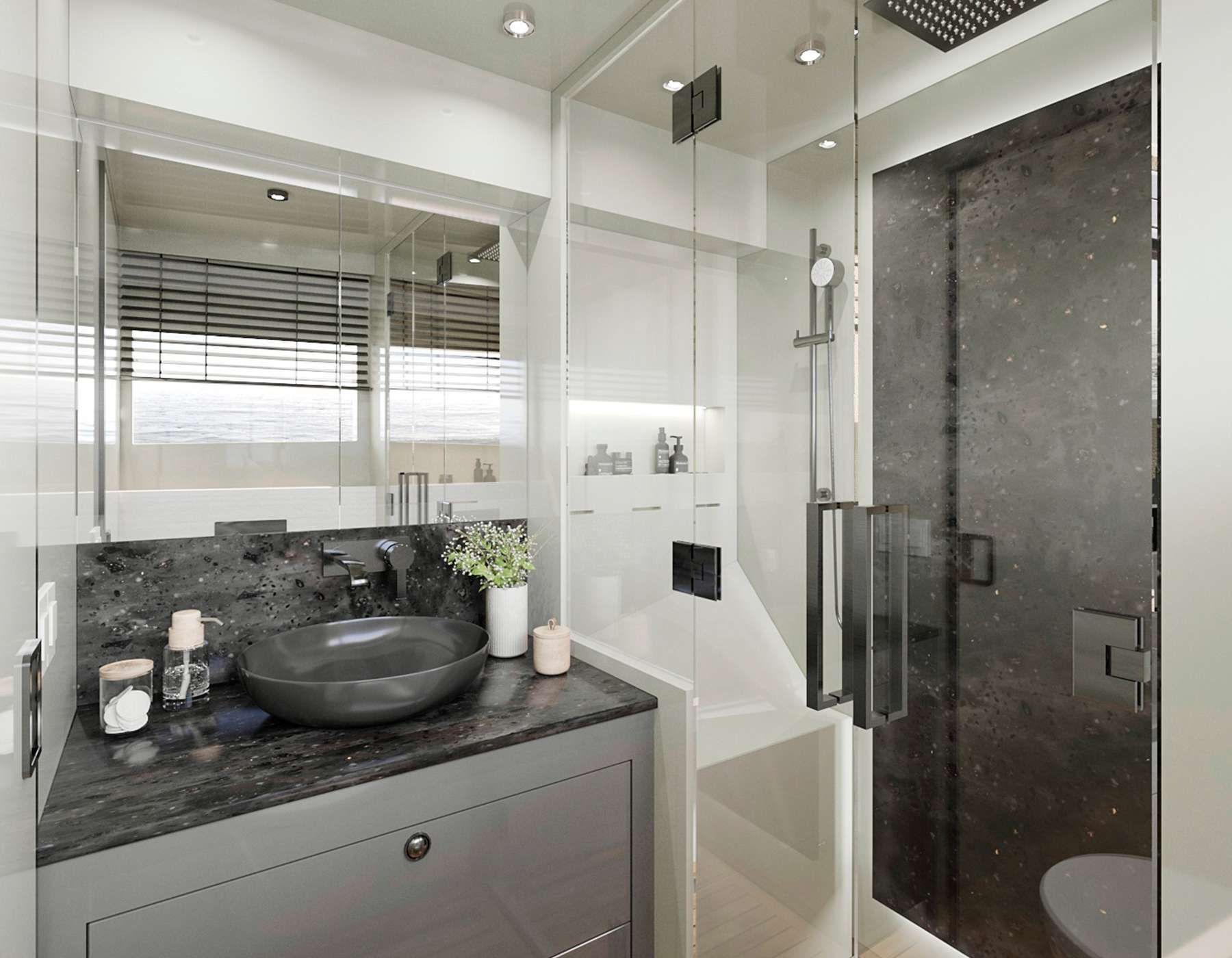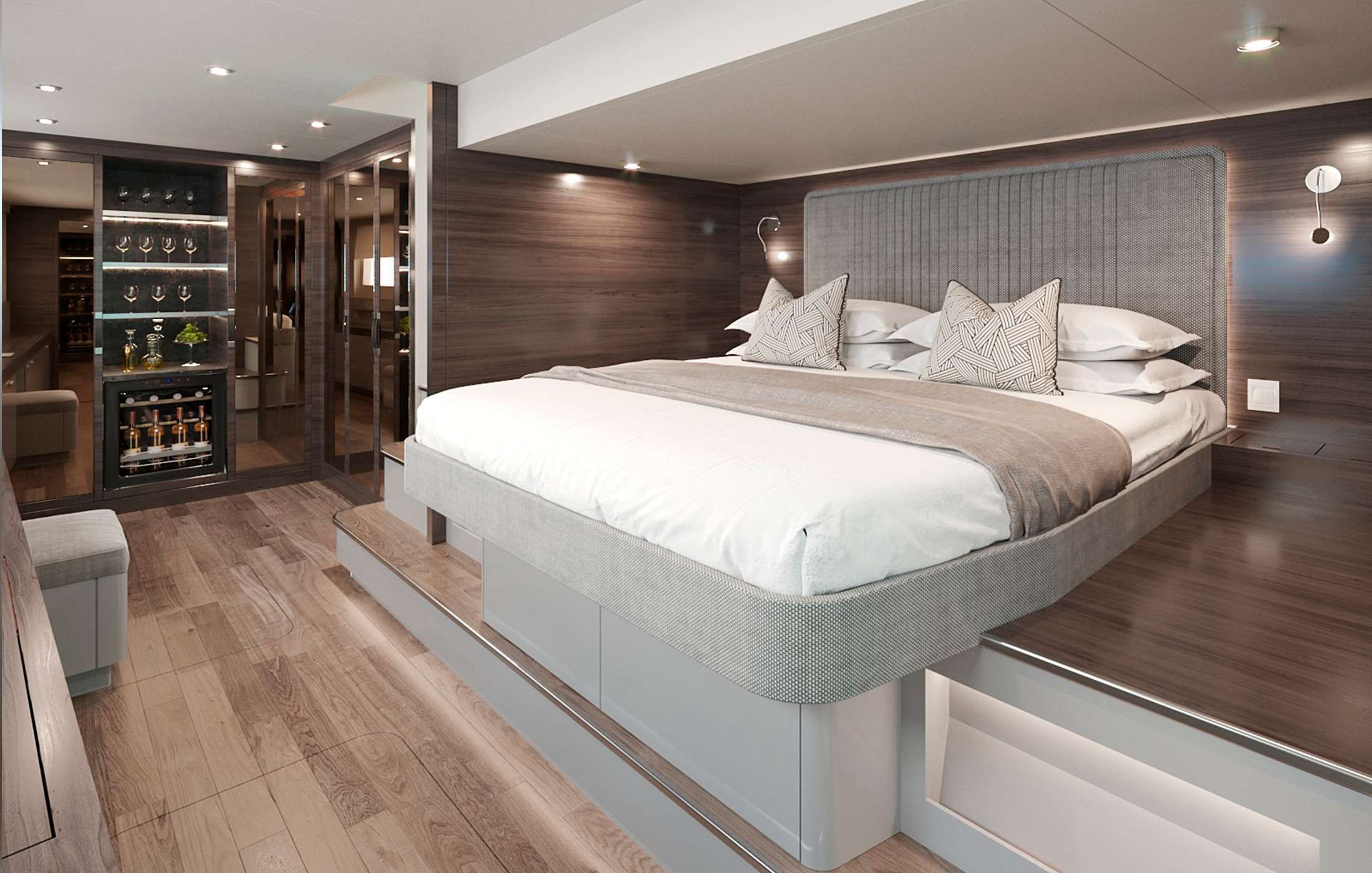 Inside, the open-plan interior feels calm and welcoming, designed for comfort rather than formality. The saloon supports easy conversation and downtime alike, making it a natural extension of life on deck. Four en-suite cabins provide well-considered accommodations, including two King cabins, one Queen cabin, and one Twin cabin. Each space is designed to offer privacy and comfort after long, sun-filled days.