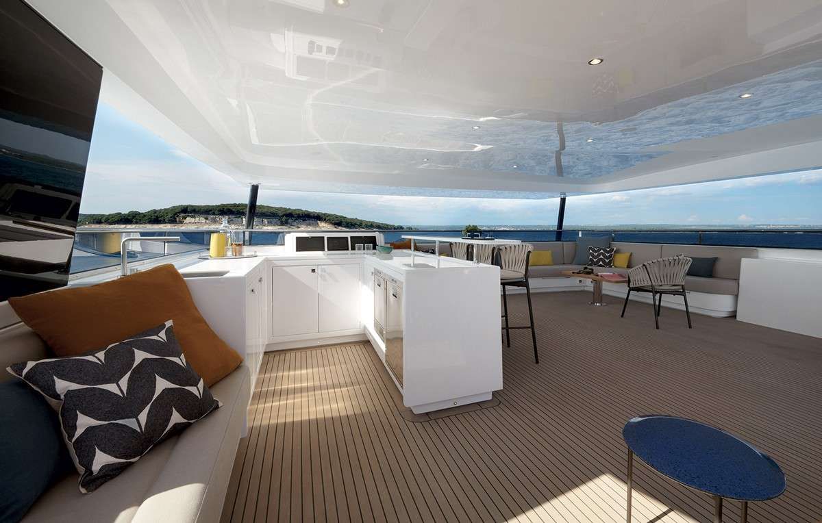 The aft deck quickly becomes a favorite gathering point, especially during alfresco dining moments near the shores of St. John. Forward, the foredeck offers uninterrupted sea views and space to stretch out under the sun, while the flybridge above delivers nearly 360-degree panoramas toward St. Croix. Each deck offers a different perspective, inviting you to move with the mood of the day.