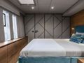 A large four-cabin layout can welcome up to eight guests in pure comfort. A standout space is the spectacular master suite, which stretches along the starboard hull, with its adjacent full size double cabin – a perfect set up for families with children. All cabins feature a stylish design, making use of a blue and grey palette and leather detailing.