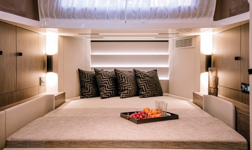 Her outdoor spaces are designed for the rhythm of a Riviera day charter. The aft deck dining lounge brings everyone together for relaxed table service, chilled drinks, and easy conversation, while the foredeck offers a sunlit escape for lounging in privacy. When guests want a moment indoors, ABAJA’s interior provides a refined retreat with modern lines, soft finishes, and a warm, composed atmosphere. Her premium cabin is a welcome feature for a quick rest or refreshing session before returning to the deck.