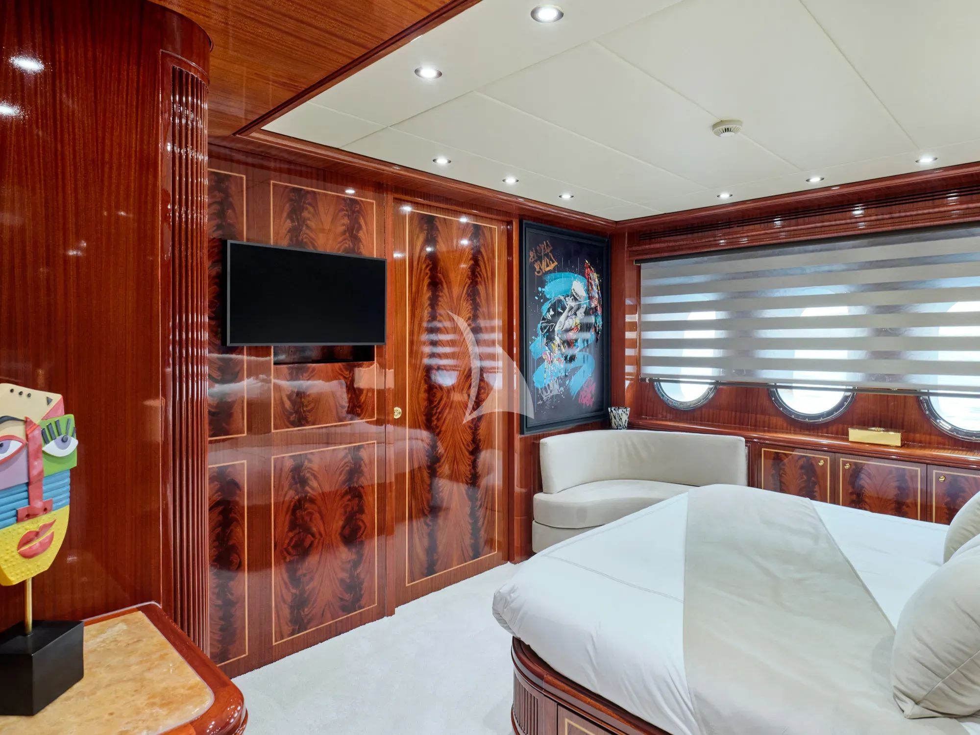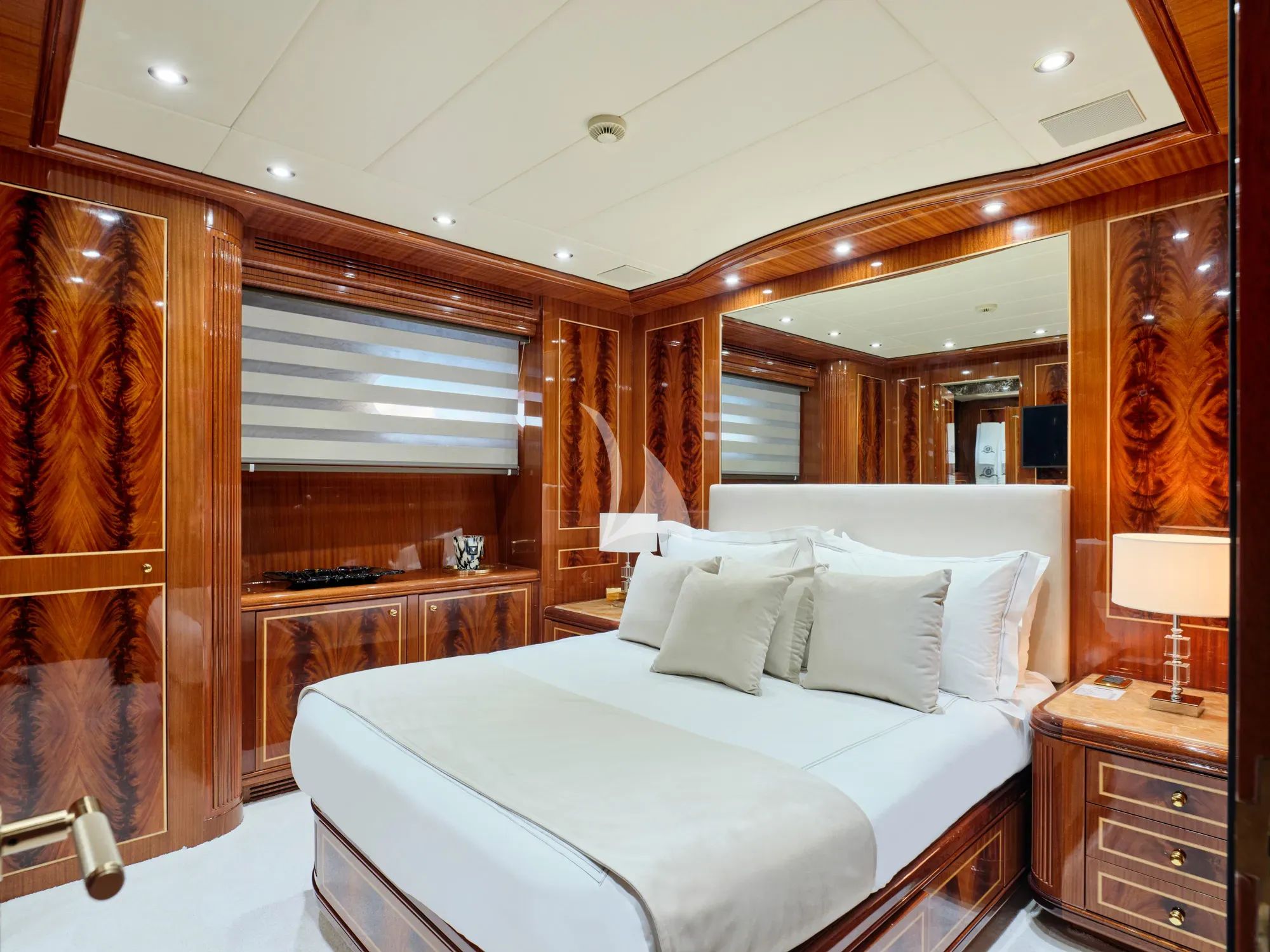 From her flybridge, guests are treated to sweeping views of Athens: temples glowing in the sun, ports alive with history, and the gentle sparkle of the horizon. Evenings in Mykonos bring laughter and cuisine shared under golden skies, while mornings unfold softly on the foredeck with fresh fruit, coffee, and a horizon that feels infinite. Each moment flows naturally into the next, shaped by sea and light.