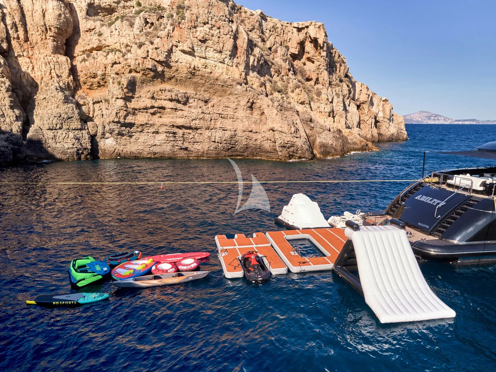 The use of all personal watercraft, including jet skis, is permitted only if the operator holds the appropriate license and complies with local operating regulations. In the Mediterranean, we recommend that all guests interested in obtaining an RYA Personal Water Craft (PWC) license use the water toys onboard safely.