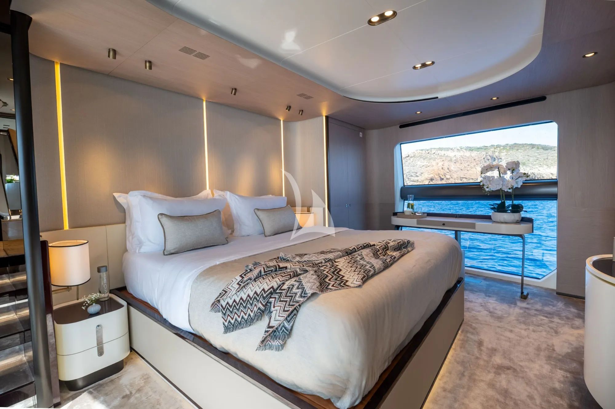 AGIO mirrors her exterior elegance with interiors designed for effortless living. Light flows through floor-to-ceiling windows, bringing warmth into the saloon and dining areas, while the cabins provide a restful retreat with ensuite privacy and tasteful finishes. Each evening feels restorative before your next round of island adventure.