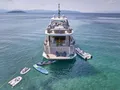 Step onto the expansive sun deck, where uninterrupted panoramic views of Greece’s breathtaking landscapes unfold. From the picturesque harbors to the timeless ruins of Athens, every moment onboard is an invitation to indulge. Toast to unforgettable memories with a glass of Ouzo while watching the sun set behind the iconic whitewashed buildings of Mykonos, a perfect backdrop for a festive alfresco feast. When docked, immerse yourself in the island’s cosmopolitan charm, strolling through its maze-like alleys or soaking in the vibrant atmosphere. Start your mornings with a leisurely breakfast on the foredeck’s plush lounging area, the baks in the warm Mediterranean breeze on the bronzing area as the vast blue sea stretches ahead.