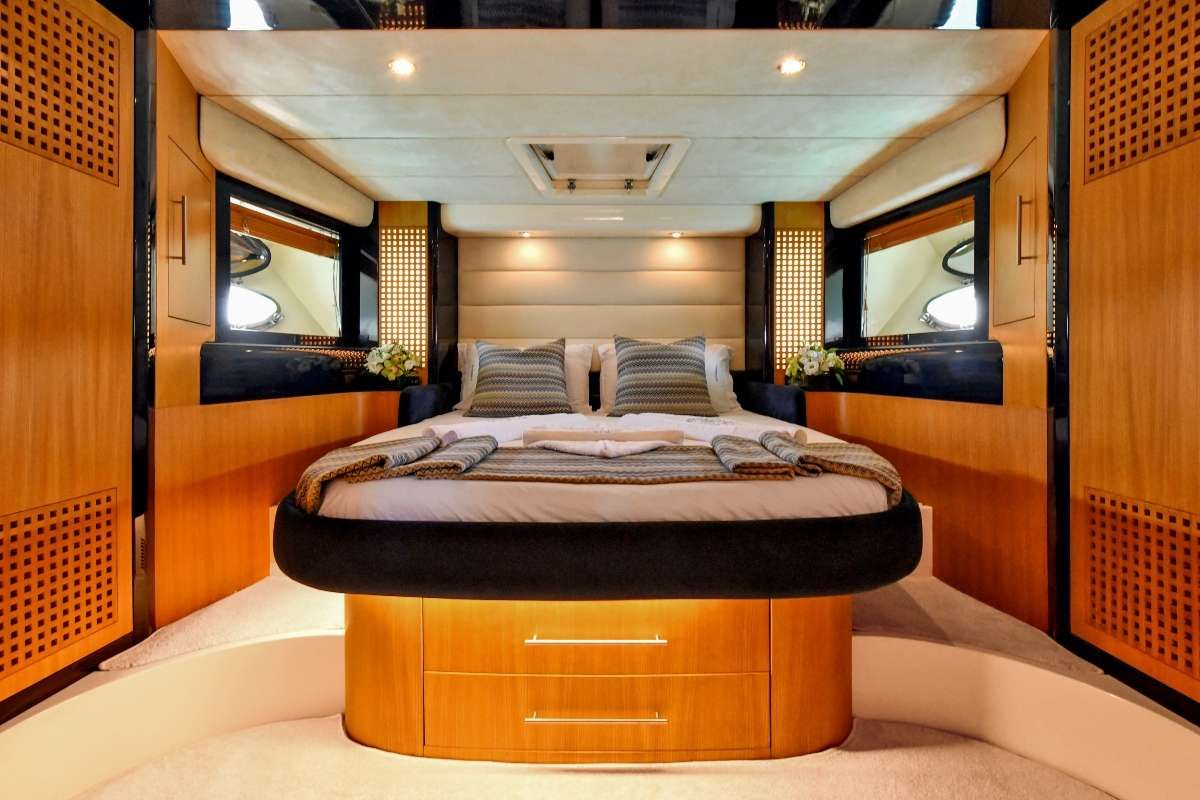 One of the best vantage points aboard is the flybridge, where wide views of Athens unfold in every direction. Share Ouzo and stories while the city’s landmarks drift into the distance. When the evening colors start to appear, anchor close to Mykonos for a beautiful alfresco dinner. To unwind, stretch across the foredeck bronzing pads and let the rhythm of the Greek sea set the tone for pure relaxation.