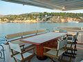 The exterior is outstanding. Al fresco dining is available on the aft deck. The flybridge is a real highlights of this yacht. Whether you want to soak up some rays or relax with a cool drink and admire the views, this is the perfect spot to spend a lazy afternoon.