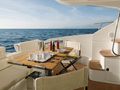 The outside is particularly impressive. Al fresco dining is available on the aft deck and sun goddesses will feel at home on the lounging area on the forward deck. The flybridge is a real highlight. Spacious and comfortable, this is the perfect spot to spend lazy afternoons in the sun, admiring the stunning views with friends or family.