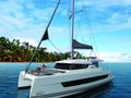 This Bali Catspace was built in 2020 and is one of the most successful catamarans in her class. With the combined talent of Olivier Poncin and Lasta Design, this catamaran was made. The latest innovations in cruising are incorporated into the Catspace allowing for a comfortable and efficient sailing experience. The exterior consists of an aft platform with bench seats, a forward cockpit with a lounge and sunbathing area, and a flybridge with the helm station. There are plenty of places to dine, relax, or sunbathe outside! The interior has 4 cabins, a salon with a dining table, and a kitchenette.