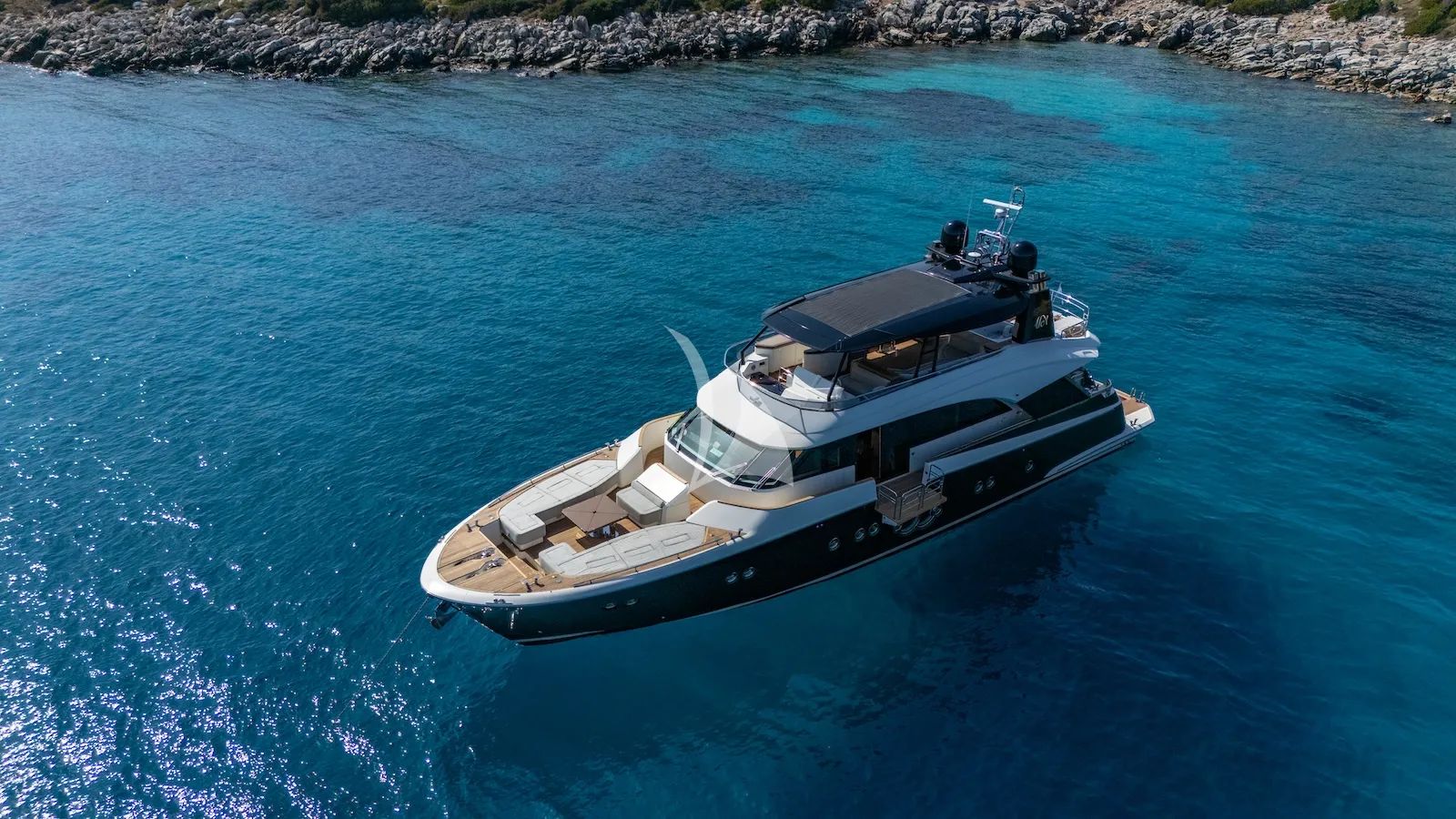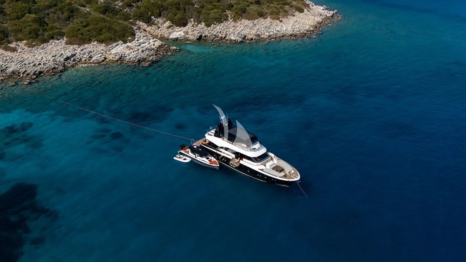 BELLA LUNA brings a sleek, confident mood to the Turkish coast from the very first glance. The Monte Carlo 26m luxury crewed motor yacht features a sporty modern black exterior that feels sharp against the region’s bright water and sunlit bays, while her comfortable cruising makes every passage feel smooth and rewarding. She has been designed to keep guests fully engaged in the experience, with amenities for recreation, socializing, and relaxation spread across spaces that invite you to stay outdoors, gather often, and enjoy the movement of the journey. Onboard, the mood is set for fun, ease, and those memorable stretches of time that seem to pass too quickly.