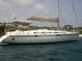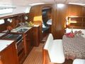 The Beneteau 463 features 3 double cabins. She has an elegant mahogany interior with a unique skylight bringing in the natural day light. The main salon has two curved settees and an oval dinette. The master cabin has a settee and a private bathroom. 2 guest cabins share second bathroom. She has a deck shower for convenience after swimming.The spacious cockpit will accommodate 6 to 8 guests with ease, and her drop-down helmsman’s seat leads to a swim platform which provides easy access to the water.