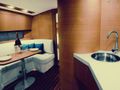 The large sun pad on the aft deck is a real highlight and is a great place to lie back with a book and soak up some sun either while cruising or at anchor. Further aft of this, the elegant, teak swim platform allows easy access to the water.