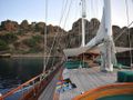 CARPE DIEM is a stunning 30m gulet from Etemoglu. She accommodates up to 8 guests in 4 cabins and is available for charter in Turkey.Chartering a gulet with an experienced crew always makes for a great holiday, but imagine the excitement of sailing along under a cloud of white as you explore the dramatic coastline of Turkey! With over 550 square metres of sail, CARPE DIEM offers this and more! Swimming, sunbathing, canoeing, windsurfing and waterskiing are just some of the activities available to you during your time aboard CARPE DIEM. Yet another daily highlight will undoubtedly be dining on deliciously fresh and healthful Mediterranean-style cuisine - the ships cook prides himself on his ability to prepare gourmet meals, which are served either indoors or on the aft deck.