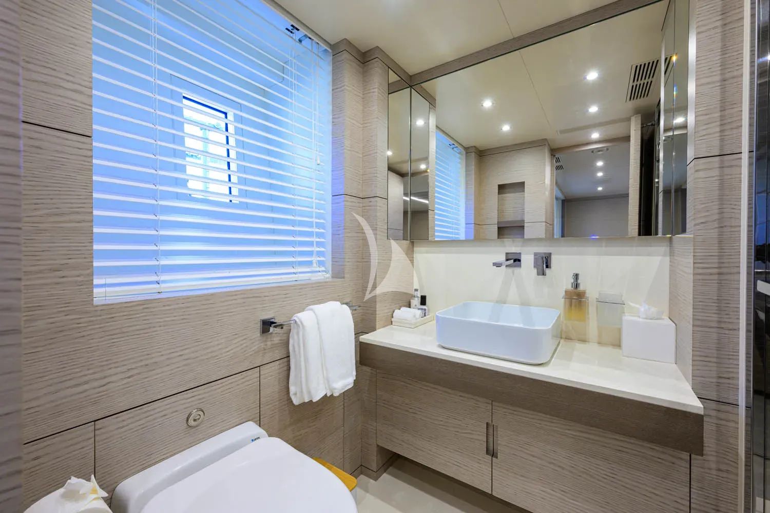 COFINA greets you with her inviting interior space, featuring a bright saloon and indoor dining area, perfect for hosting unforgettable gatherings. Her luxurious cabins, complete with private bathrooms, are adorned with accent lighting and high-quality white fabrics, creating a neat and homey atmosphere that ensures ultimate comfort and relaxation, making your stay truly unforgettable.
