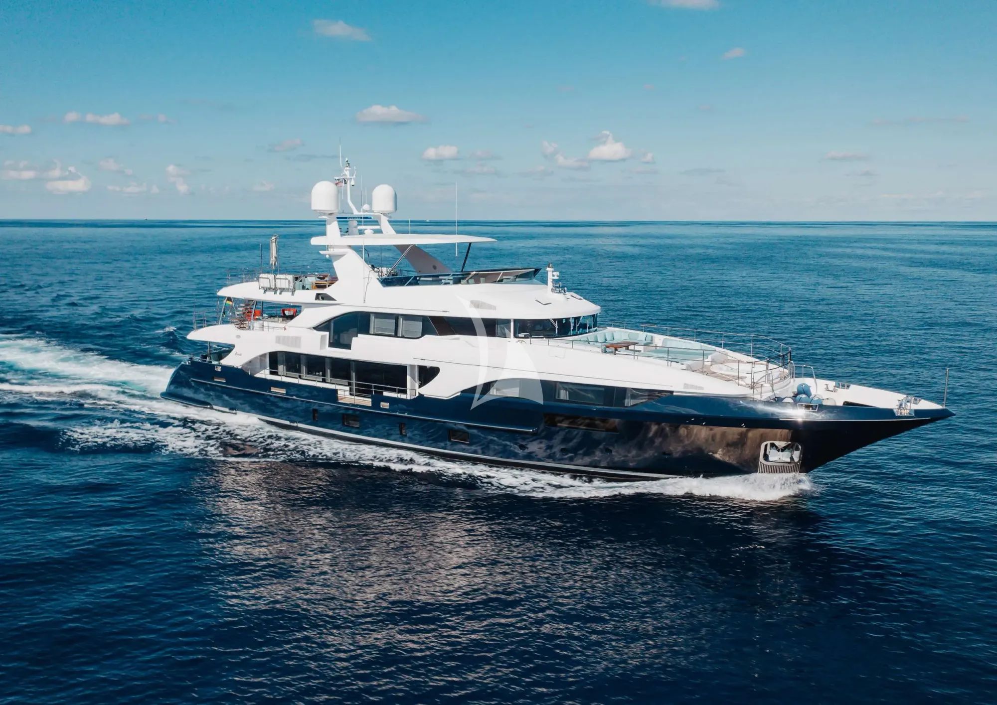 The luxurious Benetti Classic Supreme 132 luxury motor yacht COFINA boasts a sleek and cutting-edge royal blue exterior, delivering a smooth voyage through the stunning turquoise waters of the Bahamas. Her top-tier amenities for socializing, recreation, and relaxation are complemented by elegant living spaces, promising an unparalleled charter experience for all guests on board.