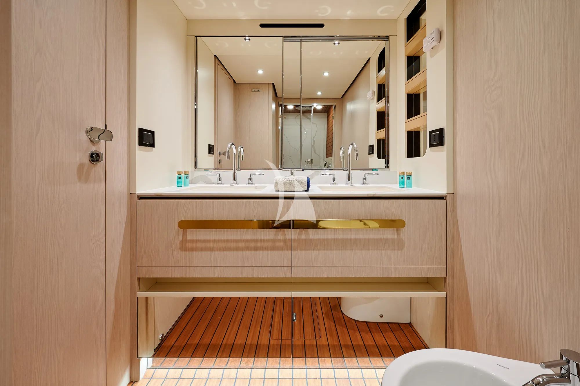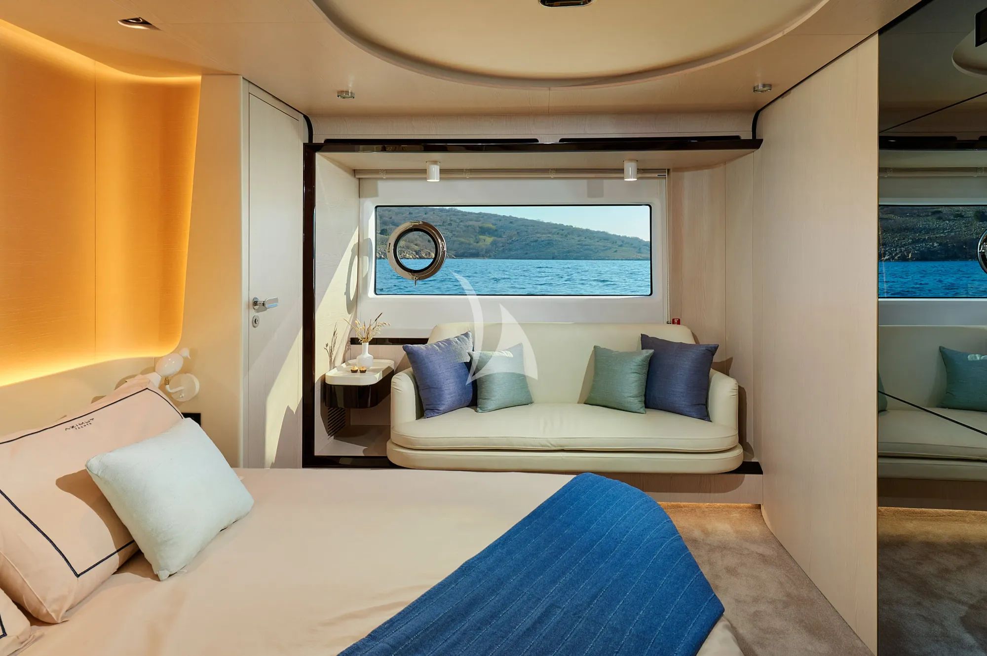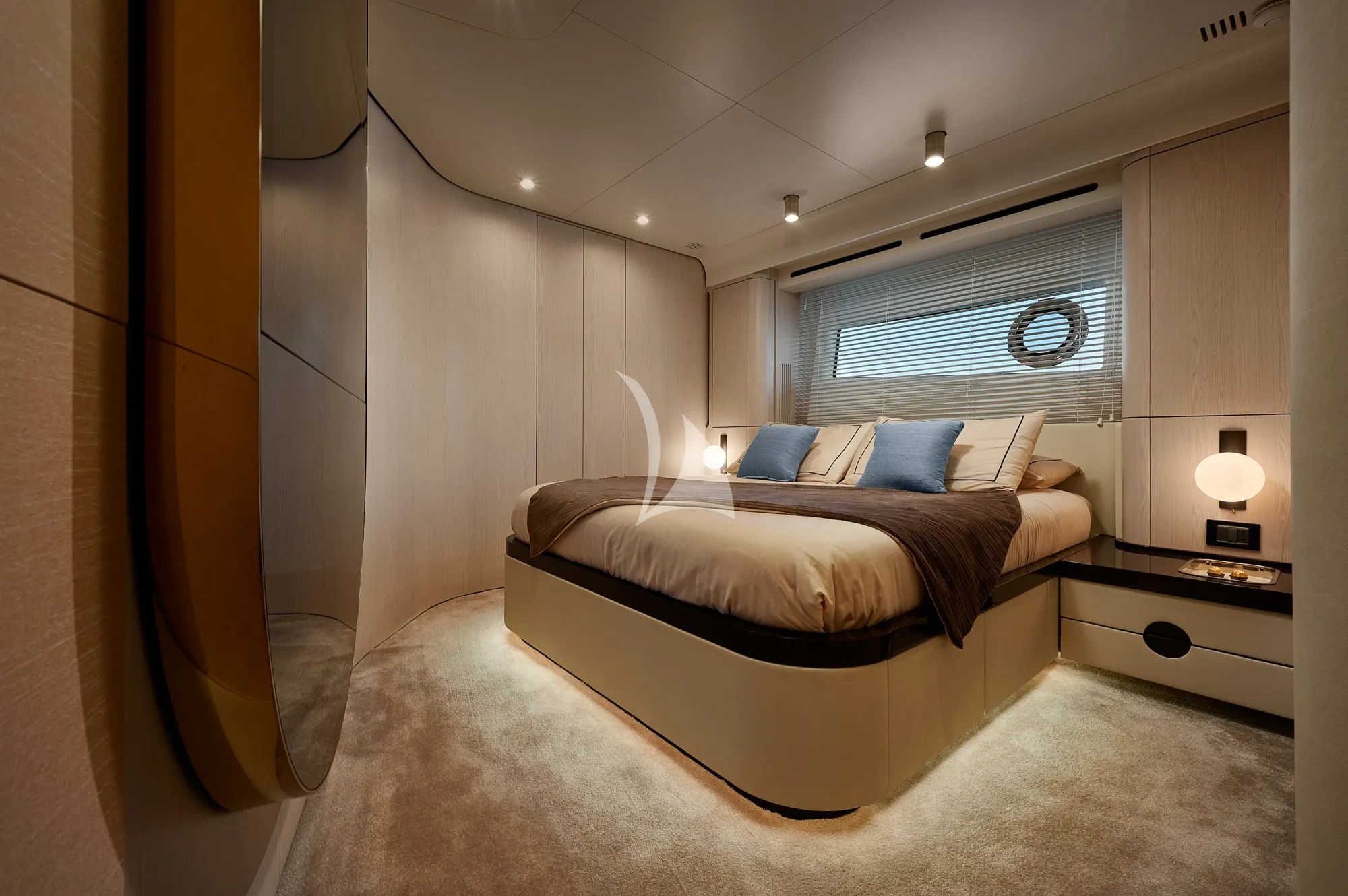 CONCORD'S 6 exudes contemporary elegance with a serene palette of light tones, natural textures, and glass windows that flood her interior spaces with light. Her cabins are designed for indulgent rest, featuring ensuite facilities and refined furnishings that reflect the yacht’s Italian craftsmanship. Every inch of her interior is shaped to enhance relaxation and balance.