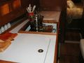 Complete galley, pressurized hot/cold water system, CD/stereo, electric fridge, 220v fans.