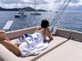 Be welcomed by a convertible dining area where you can enjoy sumptuous dishes whether under the magical Caribbean sunset or indoors with her adjustable wall panels. Climb up to an enchanting panoramic view of the USVI highlights on her flybridge equipped with a comfortable seating and bronzing area that provides an ideal setting for intimate conversations with family and friends. Soak up the sun on her bow's bronzing area while mesmerizing the blue horizon up ahead.