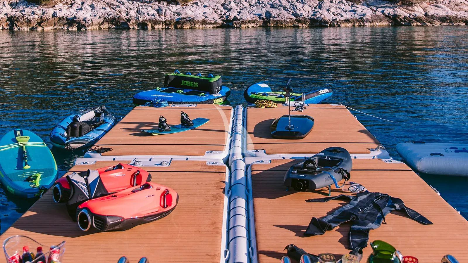 The use of all personal watercraft, including jet skis, is permitted only if the operator holds the appropriate license and complies with local operating regulations. In the Mediterranean, we recommend that all guests interested in obtaining an RYA Personal Water Craft (PWC) license use the water toys onboard safely.