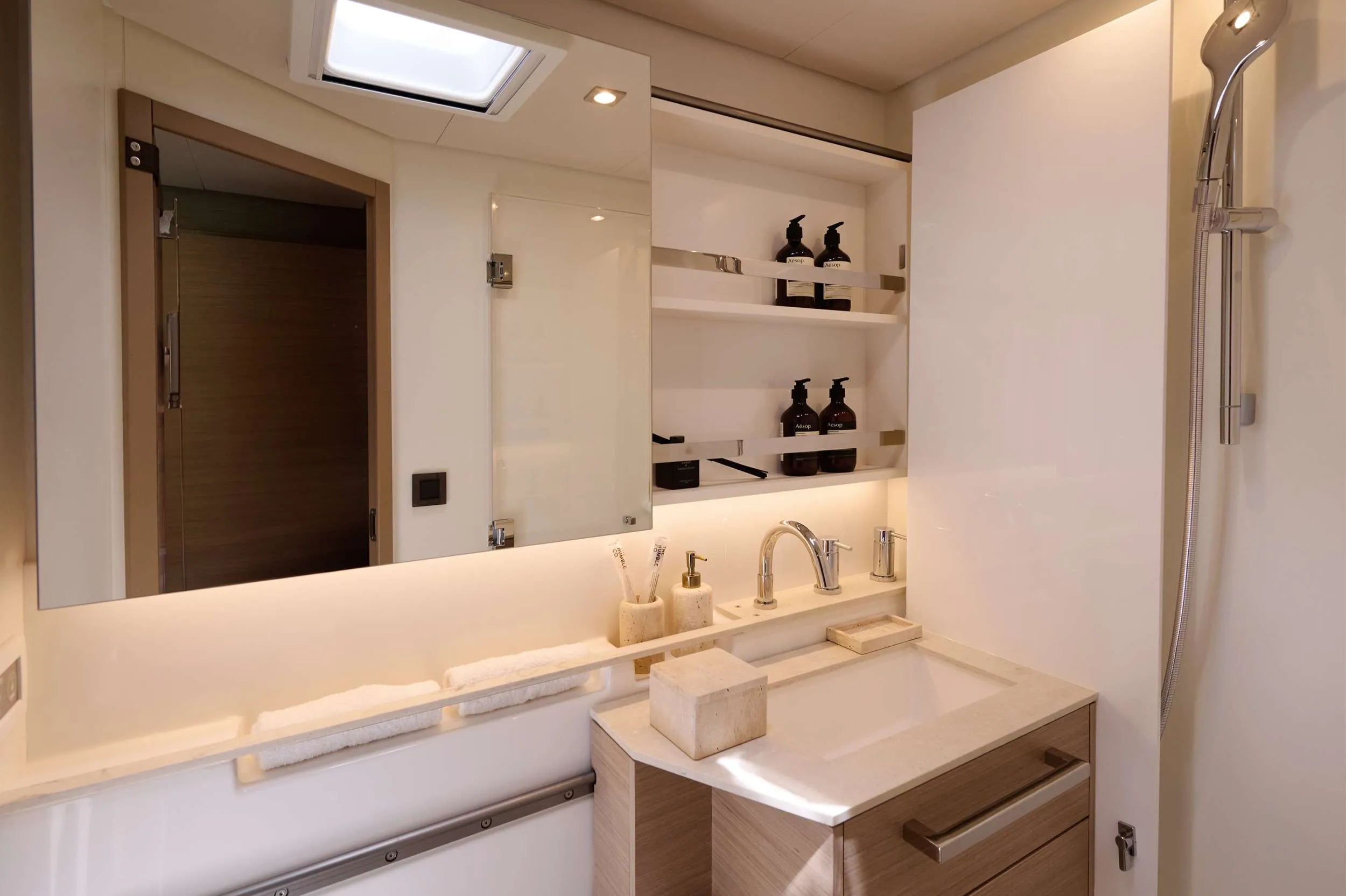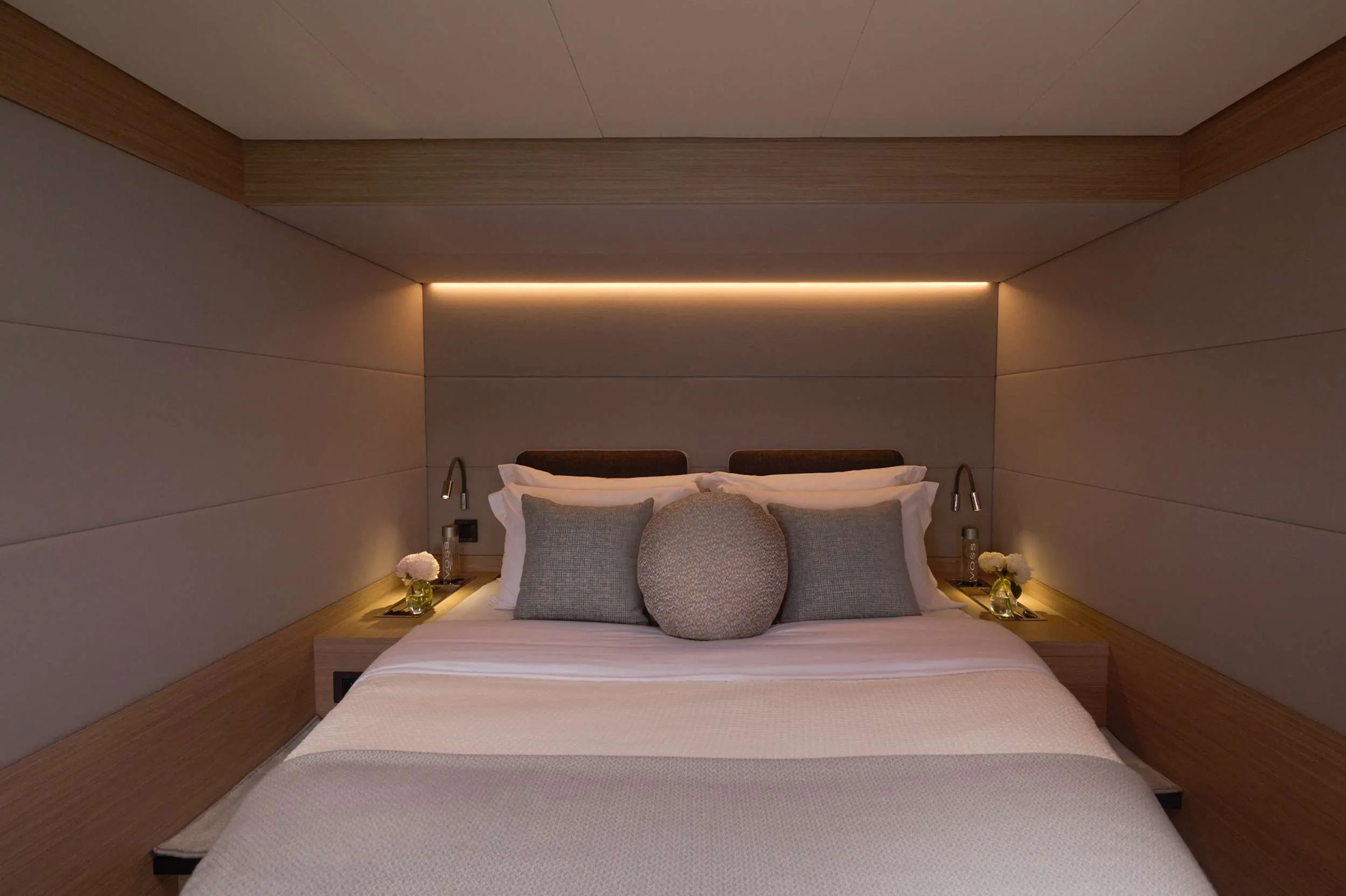 Step inside DREAM, where her interior seamlessly blends modern sophistication, contemporary aesthetics, and warm teak finishes. Expansive glass windows flood her saloon and dining areas with natural light, creating a bright and inviting atmosphere. Her beautifully designed ensuite cabins serve as your private sanctuary, offering unmatched comfort and tranquility, ensuring you wake up refreshed and ready for another day of adventure and discovery.