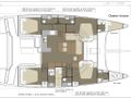 The final outdoor section is the bow where two double sun pads lie just ahead of the coach roof. Surprisingly, this still leaves room for two small sections for trampoline just aft of the cross beam. The pads are separated by a length of hard deck that houses the windlass.