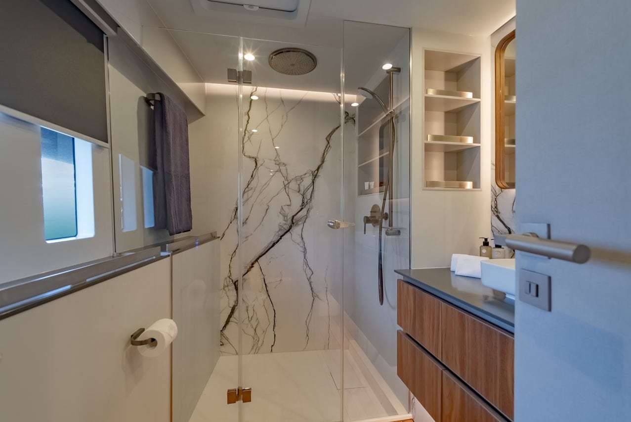 The interior presents a composed blend of modern and contemporary design, where glass surrounds the main living areas and invites natural light throughout the day. The result is an atmosphere that feels radiant and open, without sacrificing privacy or comfort. Cabins are designed as personal retreats, each with its own bathroom, while the master suite offers added indulgence through a king bed and a beautifully finished marble en-suite.