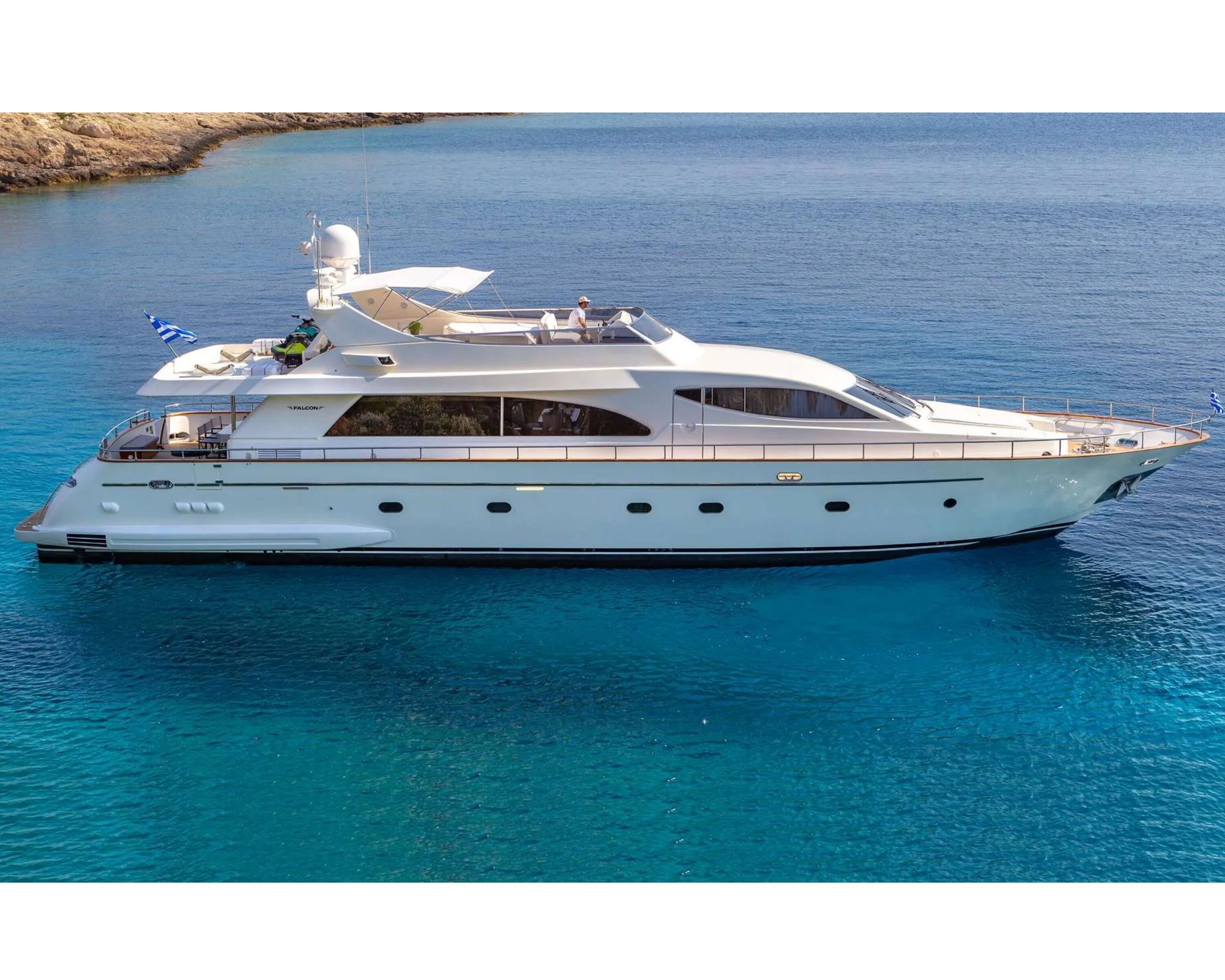 When blue meets white in perfect harmony, the journey belongs to the Falcon 86 luxury crewed motor yacht EFMARI, ending each day within the opulence of her 5 cabins for 11 guests.Your Charter Crew: