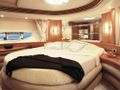 - Master stateroom is aft, full beam: Queen size bed. Desk with vanity miror<. Large en-suite bathroom with shower, bath, bidet and toilet. Wardrobe on port side + unit with 3 large drawers. On port side, a coffee table with 2 seater sofas in leather. On the starboard side, column unit with 2 x 2 drawers and a vanity desk (with mirror). Large-sized square portholes. SHARP AQUOS TV and DVD player . 2 BOSE loudspeakers. Satellite TV receiver. Safe in wardrobe