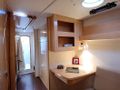The Orana 44 owner`s cabin offers complete privacy in the starboard hull. There is a large island berth, desk, loads of storage space and a very roomy head with separate shower stall. The two cabins in the port hull offer queen sized berths and ensuite bathrooms.