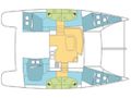 - 2 cabins in the front hulls, entered from on deck or the forward cabin, which are ideal for small children.