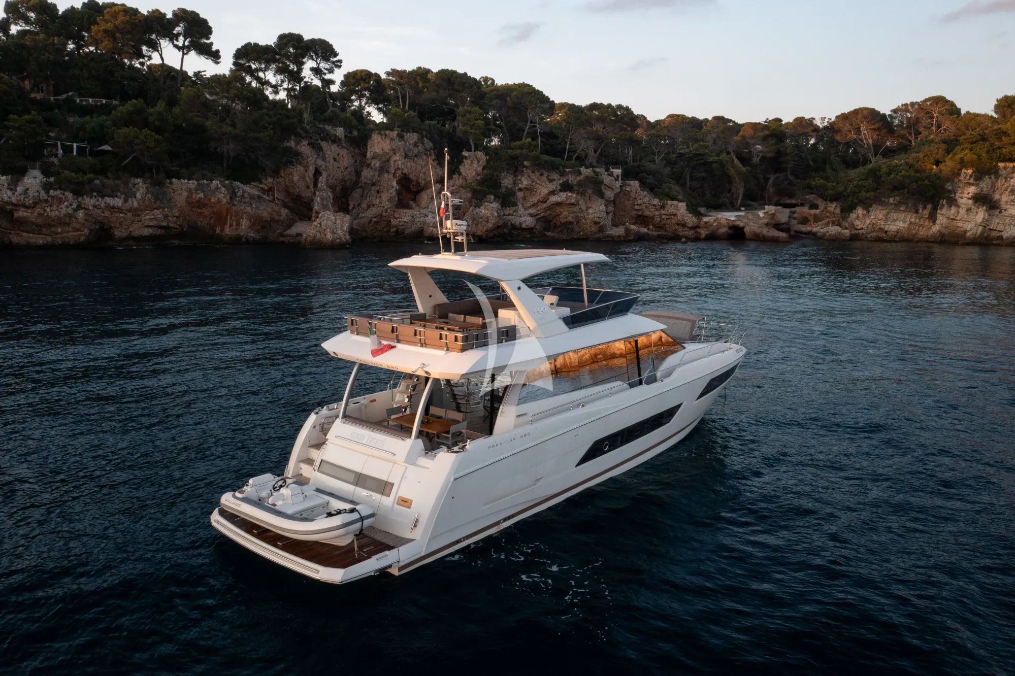 Witness the radiance of the French Riviera as you cruise on the Prestige 680 crewed motor yacht GOOD TIMES while relaxing in the comfort of her 4 cabins that can accommodate 8 guests.