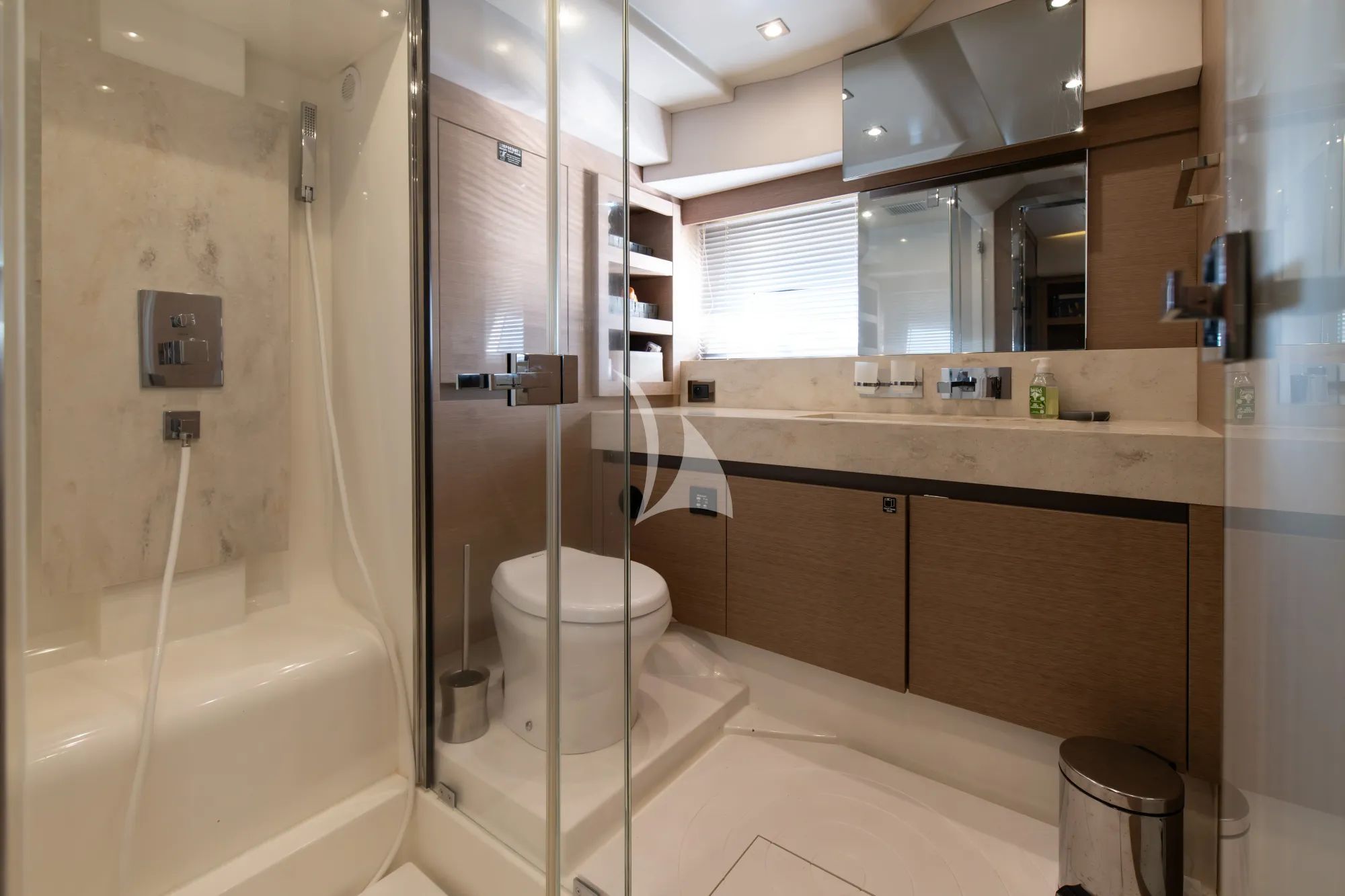 Walk into GOOD TIMES and discover interiors where modern style meets inviting comfort. Huge glass windows flood the saloon and dining space with sunshine, filling the yacht with a warm, energizing glow. After a day of swimming, sightseeing, and laughter, retreat to your spacious private cabin, where plush beds and ensuite bathrooms guarantee restful nights and total privacy.