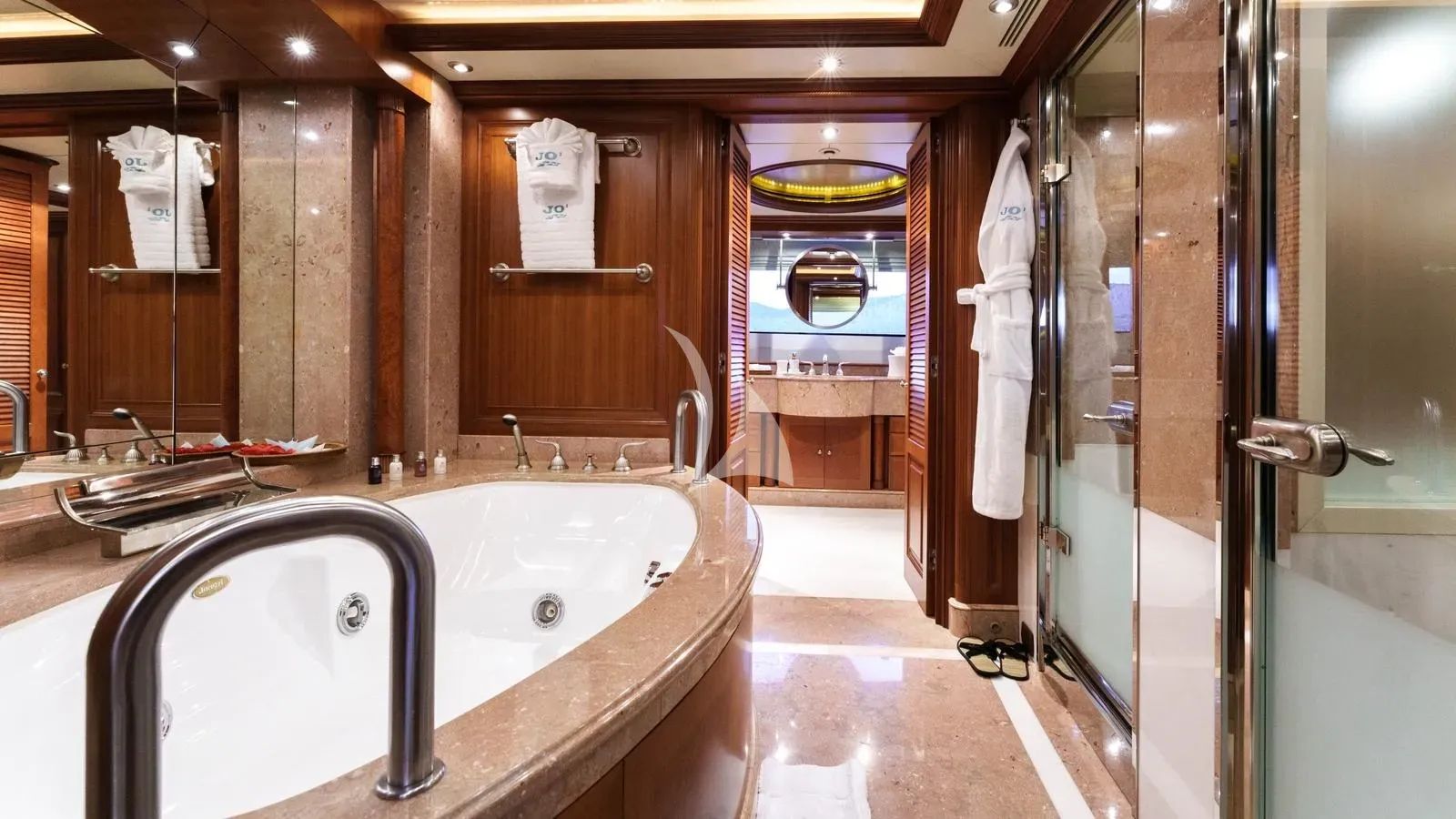 Settle aboard the Benetti Golden Bay 50m luxury crewed motor yacht JO I and let Greece unfold in style, one sun-drenched horizon at a time, then bathe in the serene comfort of her 6 premium cabins for 12 guests.Your Charter Crew: