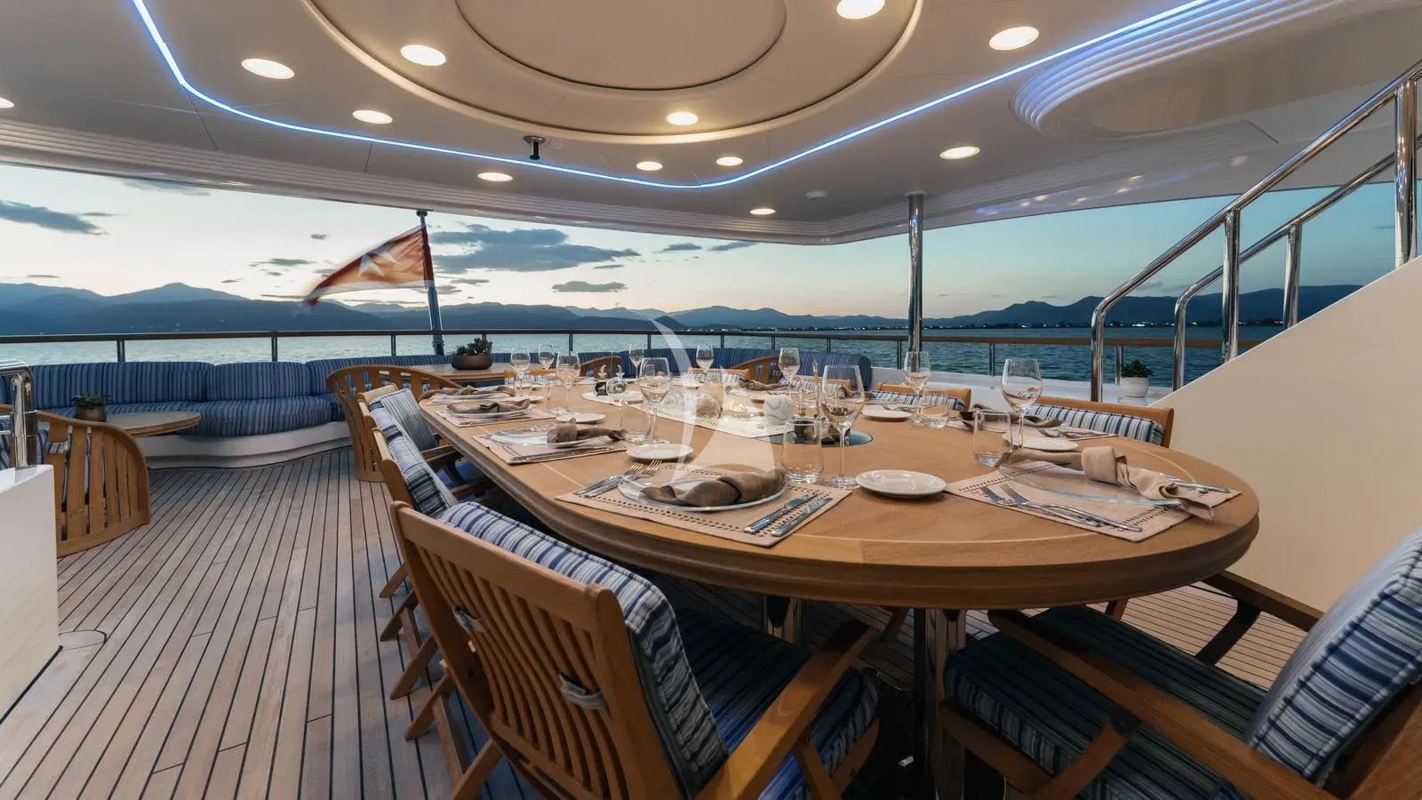 A world of flavor awaits under the expertise of Chef Anastasios Demopoulos, whose decades of culinary experience blend international inspiration with heartfelt Mediterranean influences. Enhancing the onboard ambiance, Chief Steward Nicolas Barbier, Stewardess Ifigeneia Nikolaidi, and Stewardess Halyna Horuk deliver polished, intuitive service that makes every day feel smooth and relaxing. From refined table settings to elevated cabin care, they bring thoughtful touches to every part of the journey.