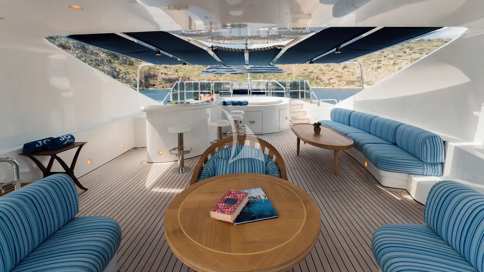 Your outdoor adventures are supported by Bosun Marios Fillipatos and Deckhands Konstantinos Denardos, Georgios Tsoulfas, and Konstantinos Danamidis, whose seamanship, safety-focused approach, and friendly energy enrich your time on the water. Whether preparing water toys, coordinating beach runs, or assisting with anchoring, they ensure every Cycladic moment unfolds with ease. Together, the JO I crew provides a well-balanced blend of expertise, hospitality, and warmth.