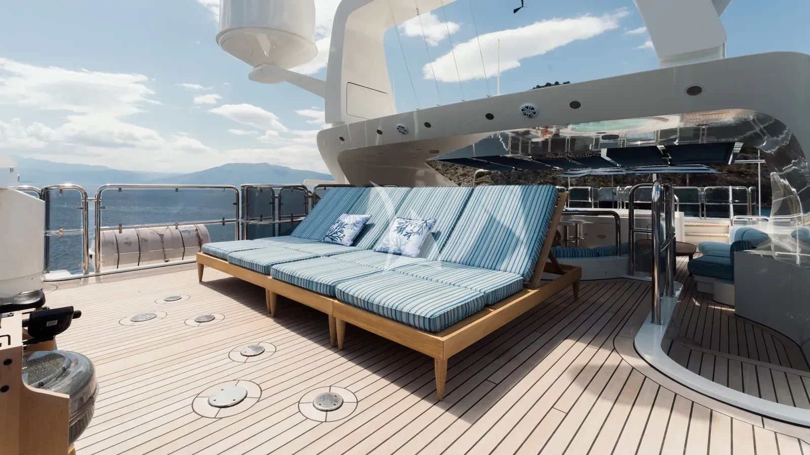Your experience unfolds beautifully on her expansive sundeck where sweeping views of Athens welcome you with layered silhouettes of ancient temples and bustling port scenes. Between dips in the jacuzzi, sunbathing on soft loungers, and toasting with Ouzo at the bar lounge, the day takes on a relaxed rhythm that carries into the evening. In Mykonos, the iconic whitewashed port sets the stage for a memorable alfresco dinner on the sky deck before it transforms into an open-air cinema under the night sky. On the foredeck, stretch out on the cushioned lounge and enjoy the uninterrupted horizon ahead.
