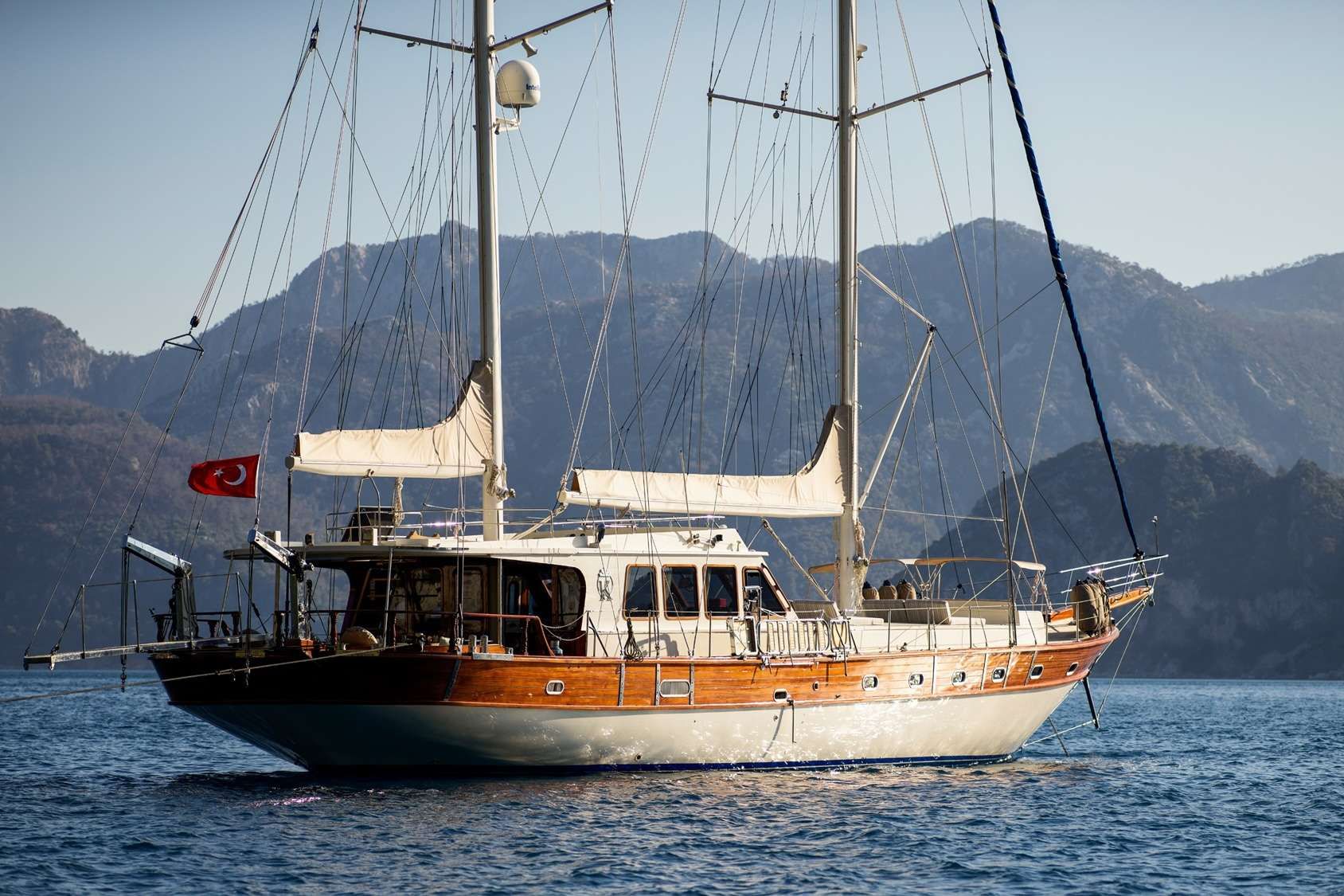 Experience the charm of traditional sailing with the beautifully maintained Gulet KAFTAN, a 25-metre Turkish gulet offering relaxed, fully crewed cruising in the spectacular waters of Turkey and the Greek islands. Built in Tuzla and refitted in 2022, KAFTAN combines classic wooden yacht elegance with modern comforts, making her an ideal choice for families or small groups seeking an authentic Mediterranean yacht charter.Designed for comfort and sociable living, KAFTAN accommodates up to 8 guests in 4 air-conditioned cabins, including a master with king-size bed, two double cabins, and one twin. Each cabin features its own private bathroom, ensuring privacy and convenience for all guests. The welcoming interior saloon offers a dining area, bar, and lounge space, while the spacious deck provides ample room for sunbathing, alfresco dining, and enjoying the scenery.