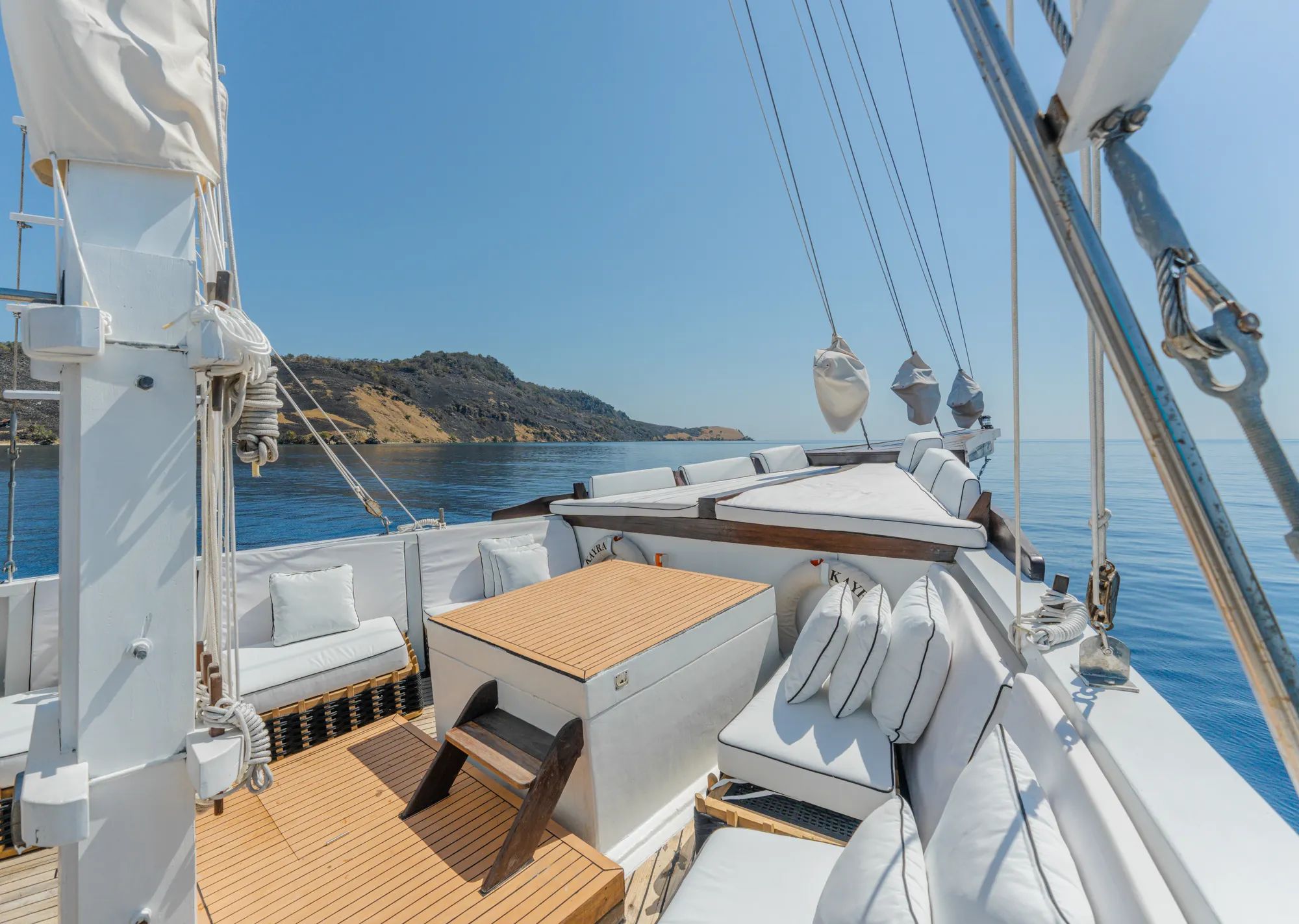 KAYRA is the kind of yacht that makes you forget the clock, a Phinisi 38m luxury crewed motor yacht built for smooth cruising through Komodo, Indonesia. Her timeless exterior carries a quiet elegance that suits remote anchorages and dramatic volcanic landscapes. Onboard, space is generous and thoughtfully arranged so guests can move easily between social moments and private retreat. The experience feels natural and immersive, shaped by the sea and the scenery around you.